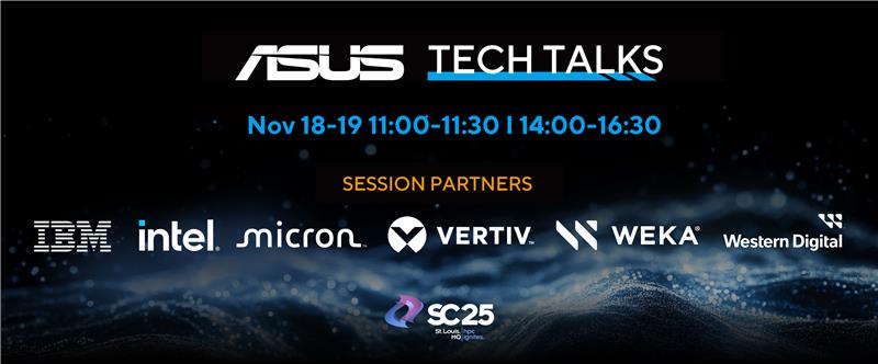 华硕将在 Supercomputing 2025 的展位上举办为期两天技术研讨会系列活动,汇聚全球合作伙伴与创新者,共同探讨人工智能基础设施、高性能计算性能及可持续数据中心设计领域的洞见。每场15至20分钟的专题会议将邀请业界领袖,分享基于华硕技术的实际应用案例与协作突破成果。