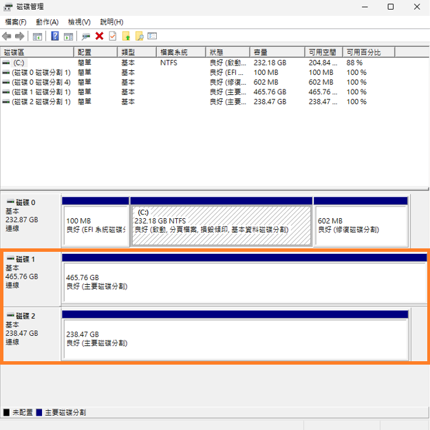 Q6:如果已经在BIOS中设定为RAID模式并建立了新的数据RAID磁盘区,但磁盘仍然显示为独立磁盘(如下图),怎么办?